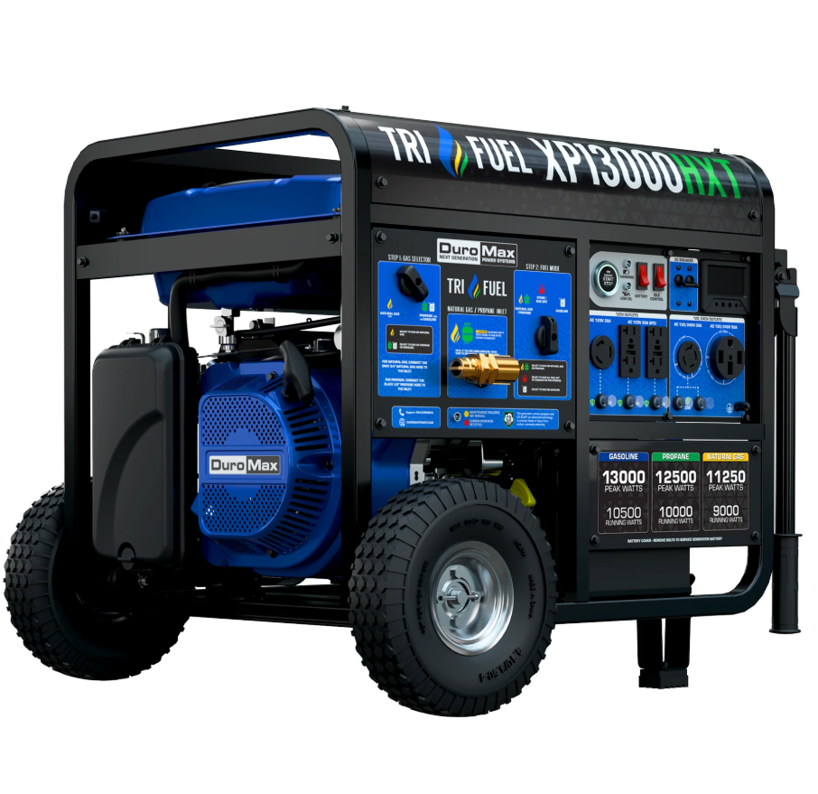 You asked for it and DuroMax delivered! Introducing the XP13000HXT Tri Fuel generator that America has been waiting for. With 13,000 watts of peak power, this unit will run on Gasoline, Propane, or NATURAL GAS and stands alone as the largest Tri Fuel portable generator on the market!