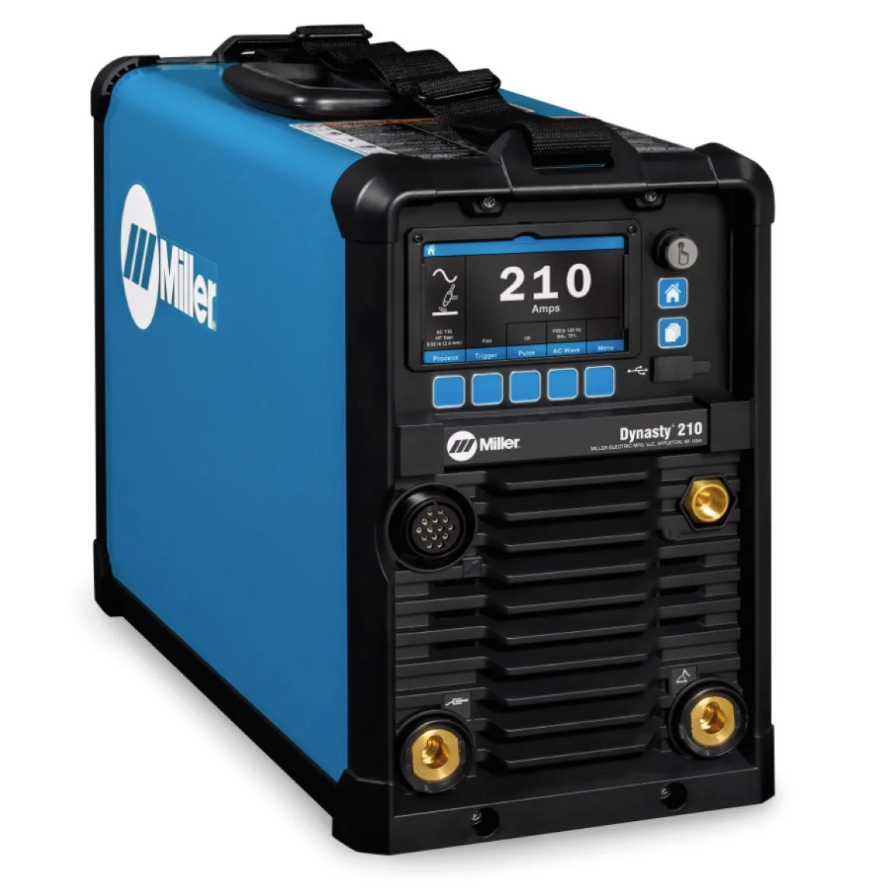 The Miller Dynasty 210 offers pulse on/off, pulse frequency, peak duty cycle, background amperage, initial amperage, initial slope time, final slope time and final amperage control.