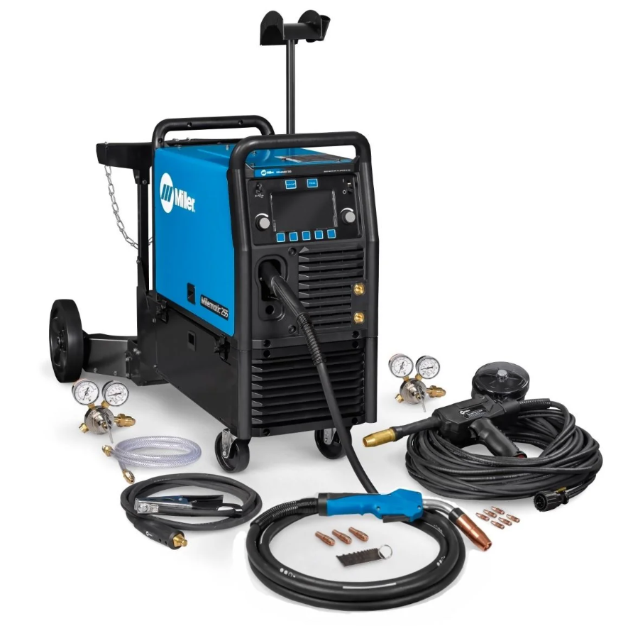 The Miller Millermatic 255 MIG/Pulsed MIG Welder- (Fully Loaded) 208/240V (907734) is designed for the light manufacturing and fabrication users who want a smaller, versatile workhorse that is easy to setup and easy to use. This 250-amp inverter welder can be integrated on running gear for easy movement around the work area or it can be quickly disconnected from the running gear enabling portability, making it easier to integrate into a work cell or work in confined spaces.