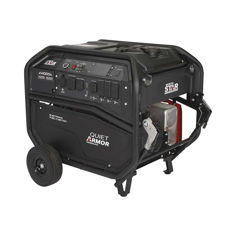 The NorthStar e14000s Commercial-Grade EFI Portable Generator with Electric Start is the ultimate, high-powered, high-performance power solution for demanding jobsites. Powered by a NorthStar e670 OHV EFI engine, this ruggedly constructed generator is built for extreme durability and safety. A heavy-duty steel exoskeleton and premium components provide the reliability tough jobs require. Quiet Armor Technology delivers up to 20% less noise as measured (in dBA) against leading, commercial-grade portable generators*. It comes with a built-in battery charger/maintainer for easy charging of onboard electric start battery. Carbon monoxide detection and automatic shutdown ensure safe operation. A cutting-edge, multi-function LCD display allows for monitoring all generator functions in one convenient place. Industry-leading testing and warranties provide peace of mind to ensure long-lasting performance. *Independent sound testing conducted by a NIST accredited lab under NVLAP